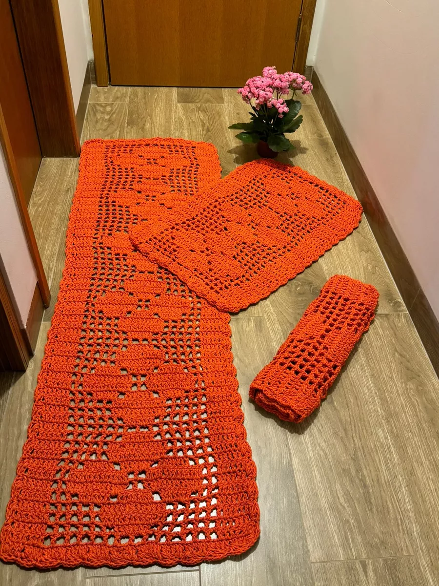 Jogo de Passadeira Rosa 3 Peças de Crochê - Cor Laranja
