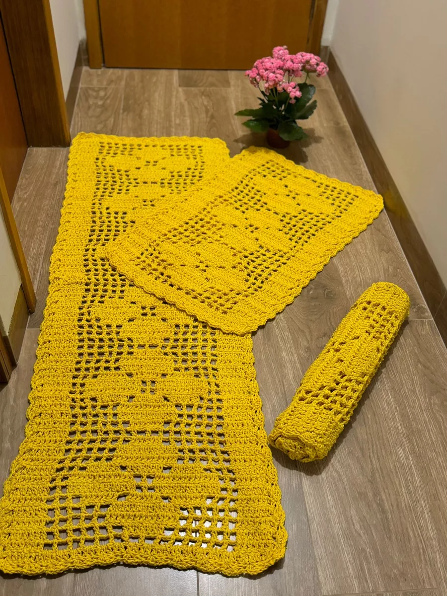 Jogo de Passadeira Rosa 3 Peças de Crochê - Cor Amarelo