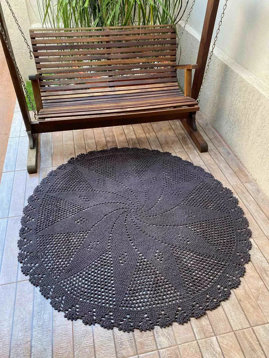 Tapete de Crochê Redondo 1,60 Metros - Cor Marrom Escuro